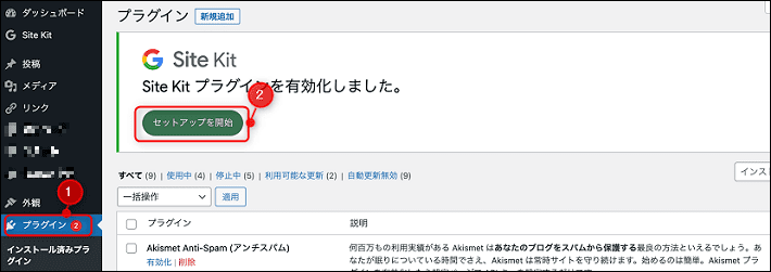 ⚫︎プラグイン”Site Kit by Google”を有効化しておく