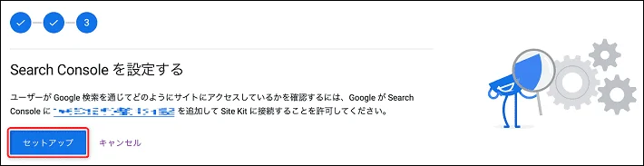 「Search Consoleを設定する」の画面が表示されたら、セットアップをクリックします。