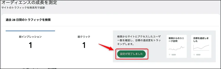 「アナリティクスの設定完了。」と表示されれば完了です!