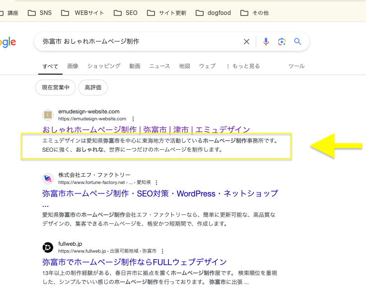 | 「検索結果ページ」のタイトルタグ | デフォルトでOK |